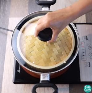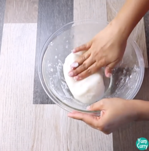 4. When mixture turn like a soft dough, switch off the heat. Cover the mixture and let it rest for 15 minutes.