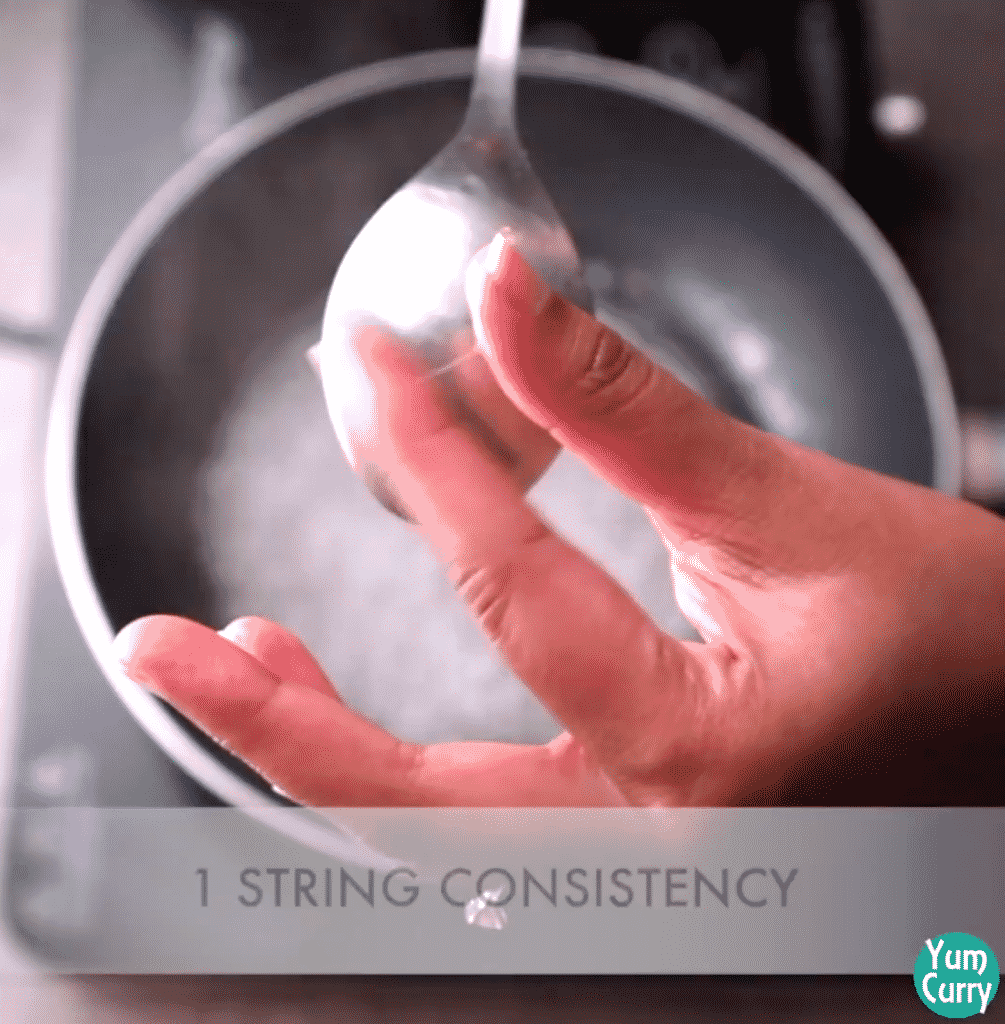 - Check for its consistency, we are looking for 1 string consistency sugar syrup.