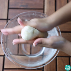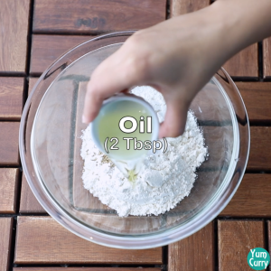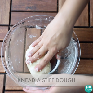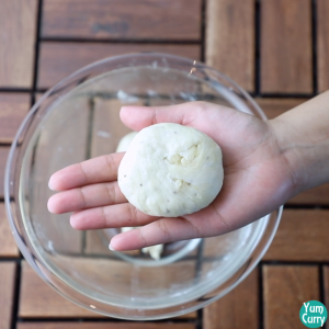 [adinserter block=”14″] - Add room temperature water to it, little at a time and knead it to form a little firm dough. Apply oil on top of it and cover it with a cloth and rest for 10 minutes.