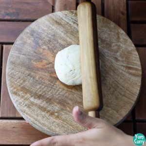 [adinserter block=”14″] - Now take a small portion of the dough and roll it thick using a rolling pin.