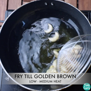 - Fry it on low-medium heat until golden brown. Stir in between.