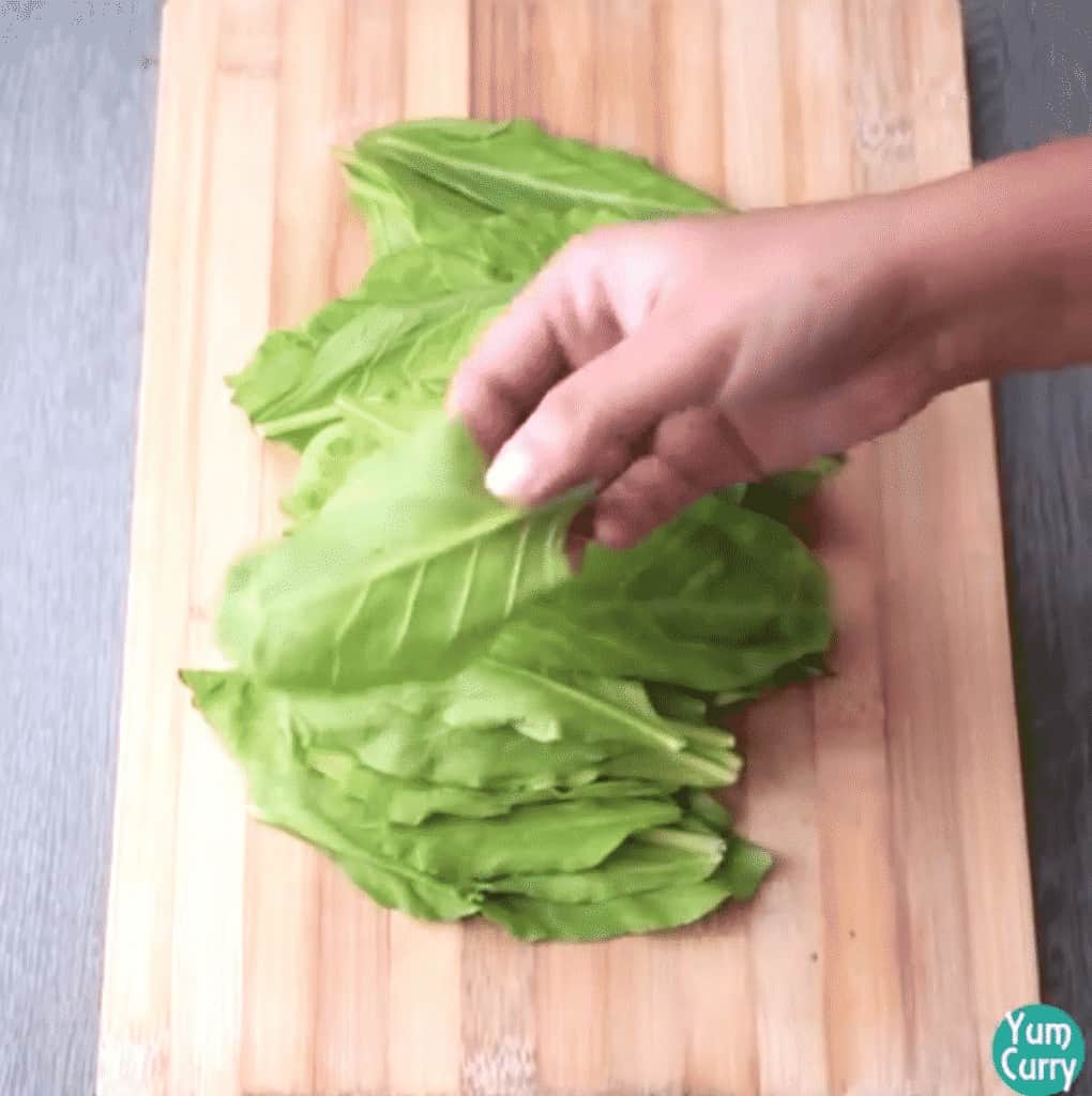 - Wash and pet dry fresh small-medium size palak leaves. We are making pakora by using whole palak leaves so do not chop it.