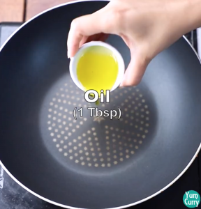 - Heat a kadhai or pan, add 1 tbsp oil.