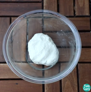 4. Take a portion from the dough, roll between your palm and gently flatten it.