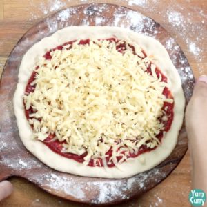 You can make pizza in just 1 hour as well but overnight proving gives the best result. So to make pizza dough I rest my dough two times – one will be for one hour and the second is overnight in refrigerator. This overnight proving gives the result similar to sour dough. If you like you can just let it rest for 2 hours.