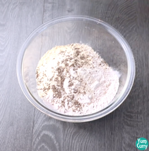 For preparing dough take Ragi flour and rice flour let them dry roast for 5 minutes in low medium heat. It will remove rawness from ragi flour. I am adding all flour in the same proportion. In dry roast ragi flour(finger millet flour) and rice flour add gram flour and wheat flour. Add all spices, butter and mix all ingredient. knead soft dough with lukewarm water. Leave the dough for 10 minutes.