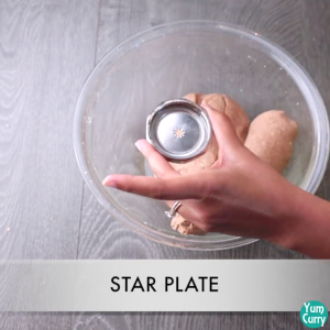 - Take a murukku maker and grease it with oil. Use a star shaped plate to make murukku.