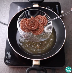 - Fry murukku on low medium heat else they turn brown without cooking from inside.