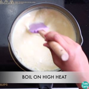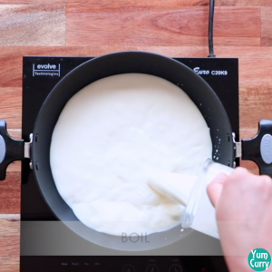- First add full fat milk in a pan and let it boil