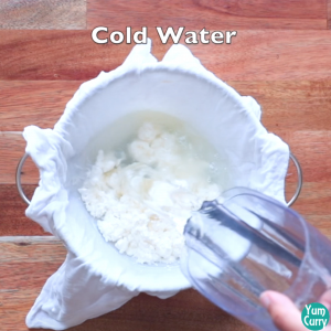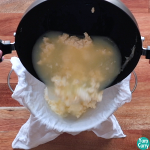 - add and mix until it curdles and prepare paneer for rasmalai