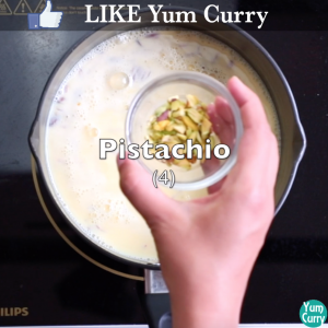 - now to prepare rabri for rasmalai add sugar, cardamom powder, almonds and pistachio to it
