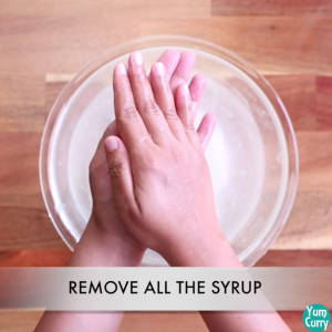 - take out and squeeze gently remove all the syrup