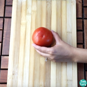 - Take tomatoes and make a x mark using a knife in each tomato (this helps peeling off the skin of tomatoes after boiling).
