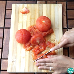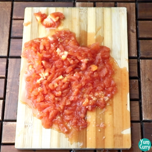 - Now finely chop the tomatoes using a knife. Discard the seeds if you can.