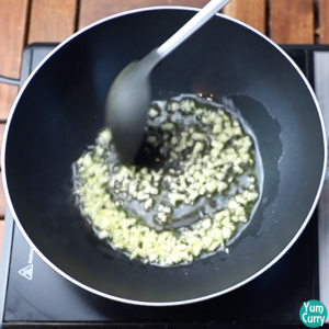 - Add finely chopped garlic to it. Fry it on medium heat.