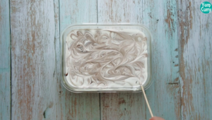 - Drizzle chocolate syrup over ice cream and make swirls using a skewer.