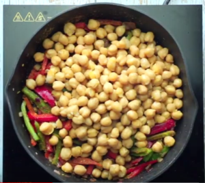 Firstly, add oil to a pan. Then add minced garlic and ginger with onion and saute them well. Add bell peppers and capsicum to the pan and cook them with the spices and masala powders. Then add the boiled chickpea and salt to the pan. Toss and blend the ingredients with tomato puree and water. Cook them for few minutes and a cup of shredded spinach leaves to the curry. In conclusion, add a teaspoon of black pepper powder and garnish the chickpea curry with coriander leaves and spring onions. Serve them hot along with rice or chappathi.