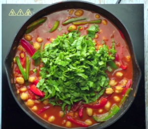 - Give them a final mix. Garnish the vegan chickpea curry with coriander leaves and serve them hot!